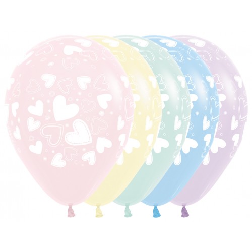 Sempertex ronde latex ballon, 12 inch (30 cm), Hearts – Pastel Matte Assortment. Verkocht per zak.